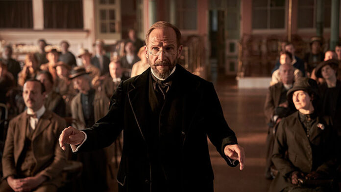 This is a war film, albeit one without trenches or battlefields. The action takes place in the village of Ramsden, West Yorkshire. The war’s shadow looms over the lives of the people of the village who gather every year to hear a musical piece performed by its choral society. With so many men away at the front—including the choirmaster, who has decided to volunteer—the choral society recruits Dr. Henry Guthrie (Ralph Fiennes) to rehearse and present this year’s concert.